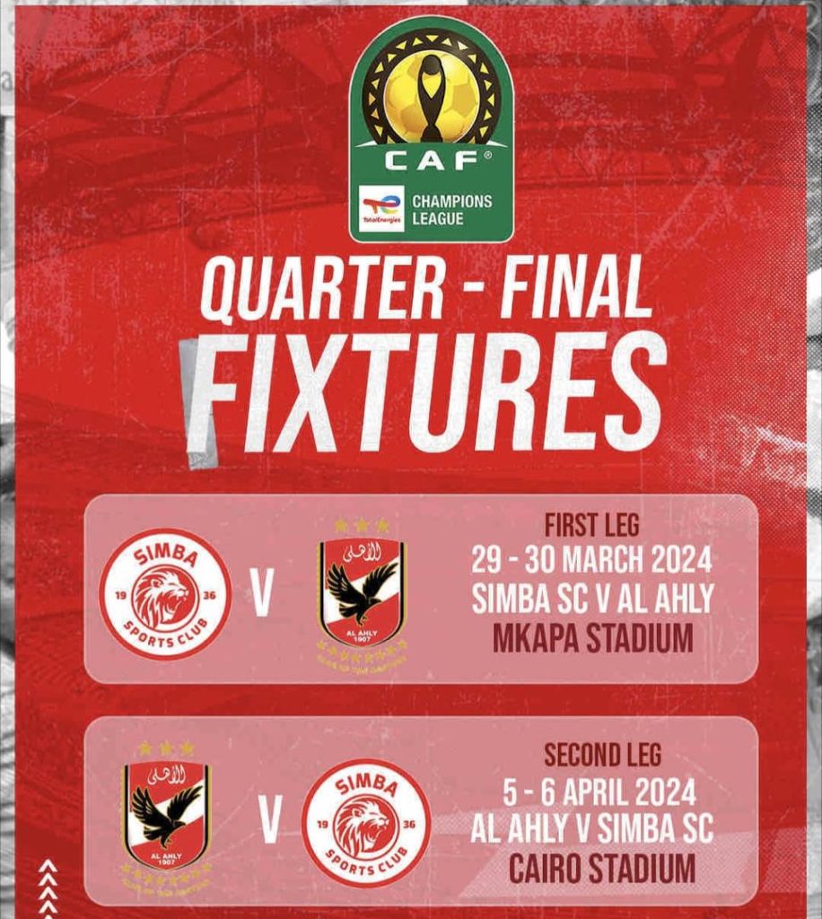 Simba Sc pamoja na Young Africans Sc Baada ya dro hiyo hatimae Kila timu imepata mpinzani atakae minyana nae katika hatua ya robo Fainali kwa jumla ya timu hizo. Simba vs Al Ahaly na Young Africans vs Mamelodi Sundowns.